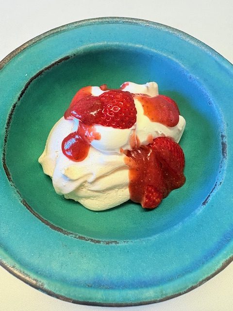 今週のカフェのおやつは、 イートンメスです。 イギリスの伝統的なお菓子で、 名門イートン校と、“ごちゃ混ぜ“ を意味する“mess(メス)“から 名前が付けられたそう。 メレンゲを作り、甘くないホイップと イチゴソース、イチゴをトッピングして できあがり。 メレンゲをスプーンで砕いて、 クリームやイチゴソースと混ぜ込んで 名前通り...